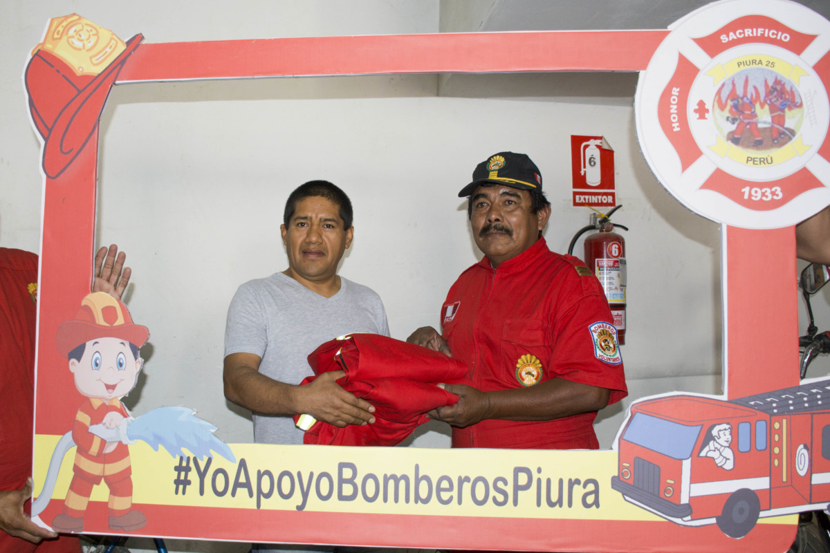 Ellos se hicieron presentes con la entrega de quince (15) overoles para los hombres de rojos. Este presente fue recibido por el capitán CBP. Hugo Chuyes Sánchez, el cual estuvo muy agradecido por el noble gesto del empresario hacia ellos.