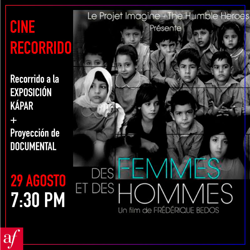 El jueves 29 de agosto, se hará una visita guiada por la exposición Kápar, de la fotógrafa Liz Tasa. Tras esto, se proyectará la película francesa Des Femmes et Des Hommes, de Frédérique Bedos.
