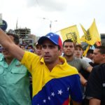 Capriles escucha a los manifestantes en Caracas. Foto: AFP.