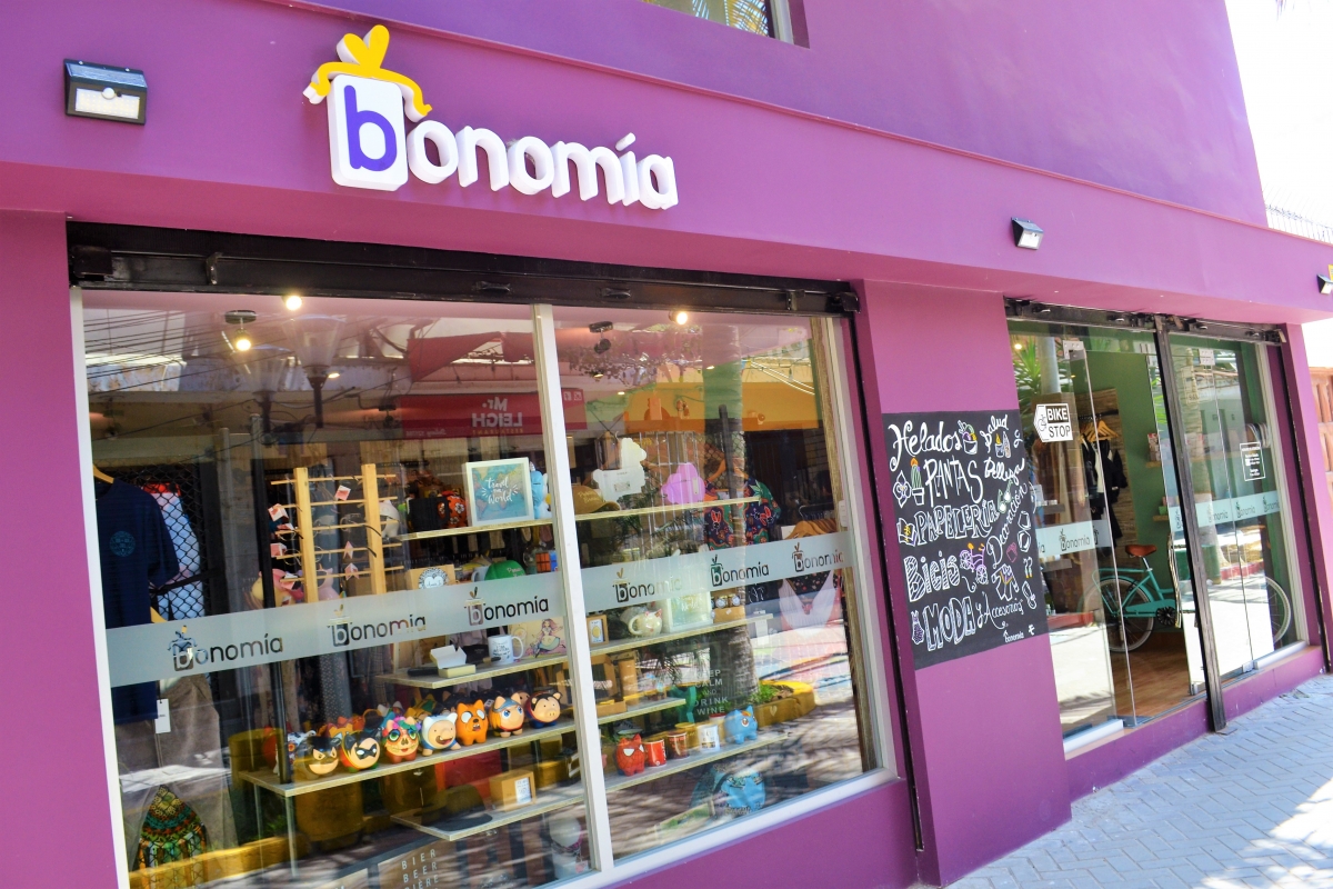 “Bonomía”, la concept store, abrió sus puertas en julio del 2019 revolucionando la forma de comprar en Piura. “En una tienda convencional, entras por ropa y sales con ropa. Acá, llegas por ropa, compras helados, te llevas una planta; tenemos desde stickers hasta bicicletas”, expresa Milagros Reyes.