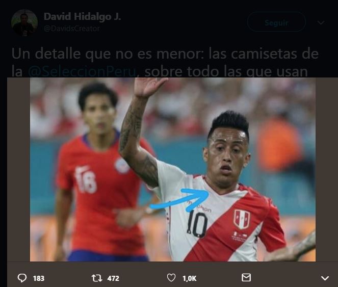 Por su parte, el periodista deportes David Hidalgo escribió en su cuenta de Twitter Twitter.»Un detalle que no es menor: las camisetas de la selección, sobre todo las que usan los jugadores, NO SE PUEDEN DESTEÑIR! Federación debe exigir a Marathon una indumentaria Dry Fit y de óptima calidad».