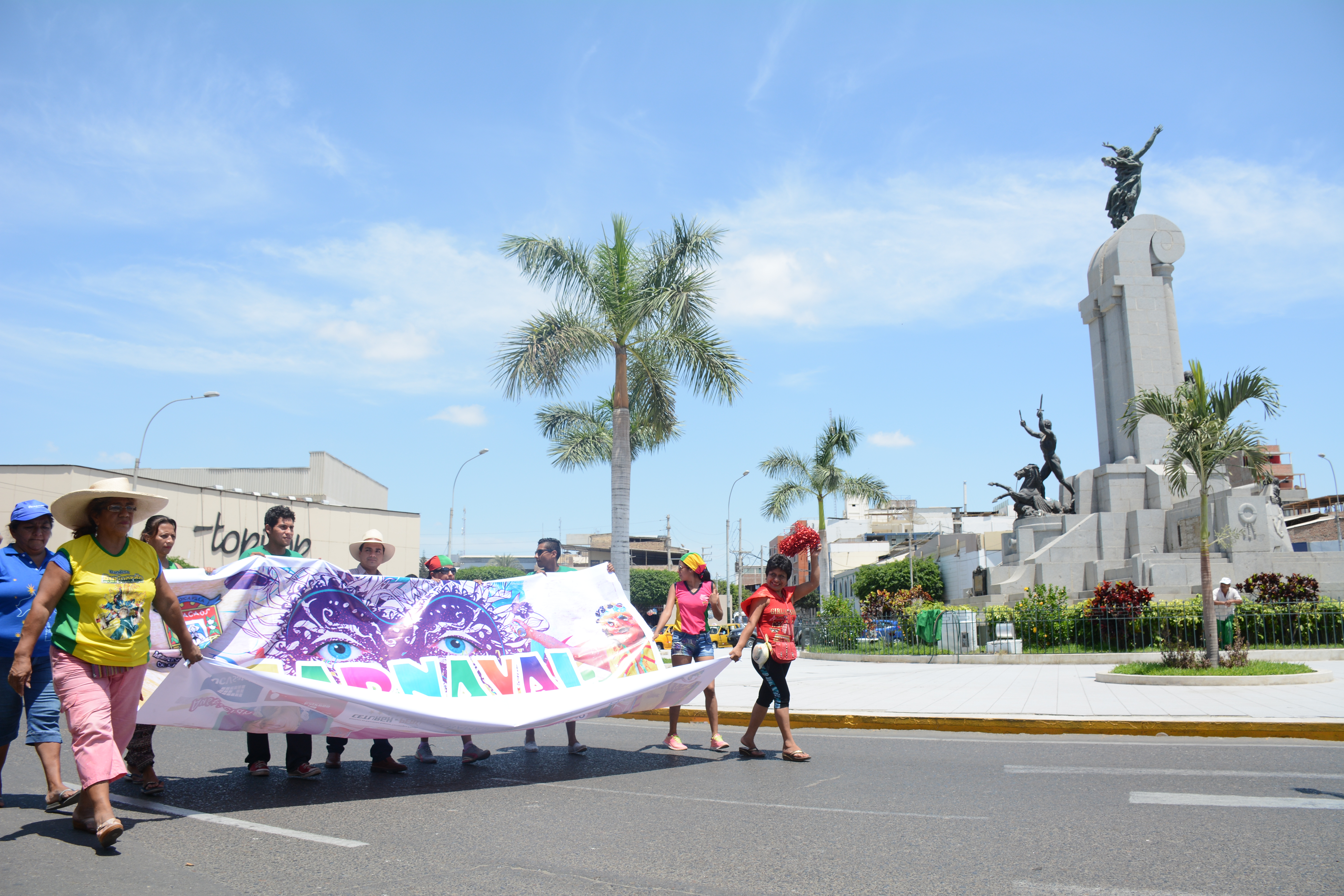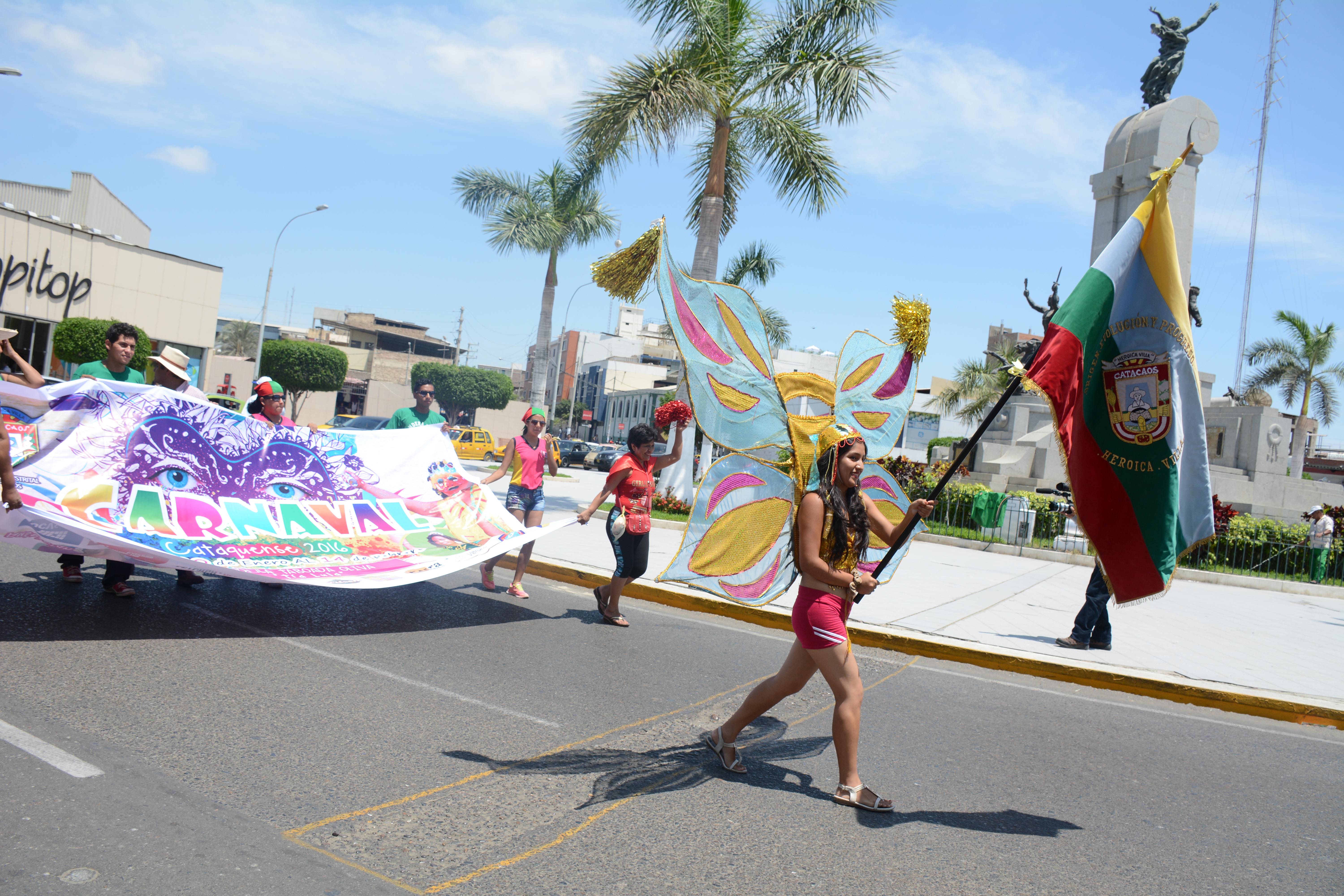 De pronto el sol se mostró más intenso y un arco iris se asomó al mediodía del viernes, para contemplar el paso de casi centenar y medio de cataquenses que se adueñaron de la ciudad de Piura para contagiar su carnaval.