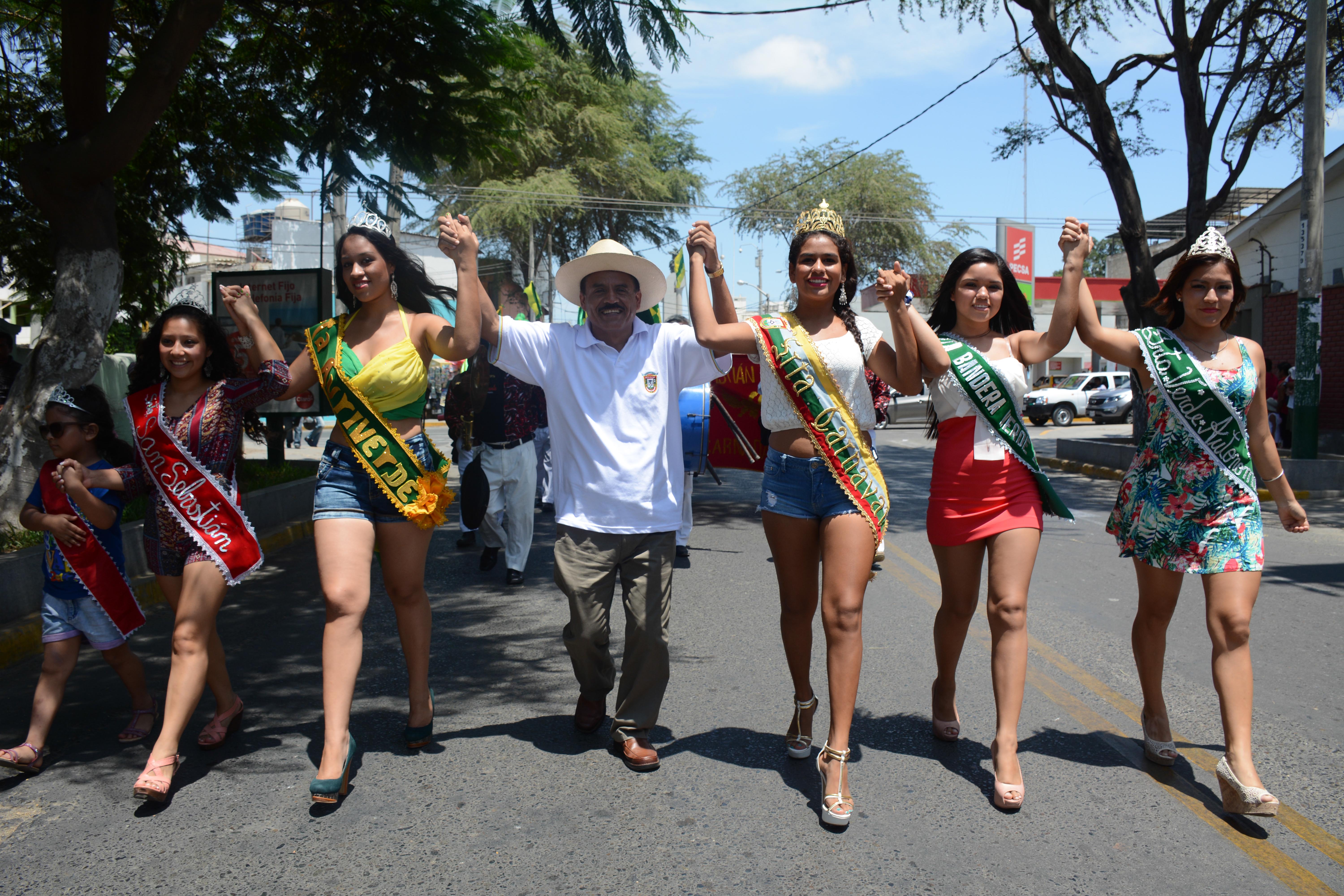 El alcalde de Catacaos, Juan Cieza, junto a la Reina Carnavales 2015 y candidatas al cetro en el recorrido por las calles Piura.