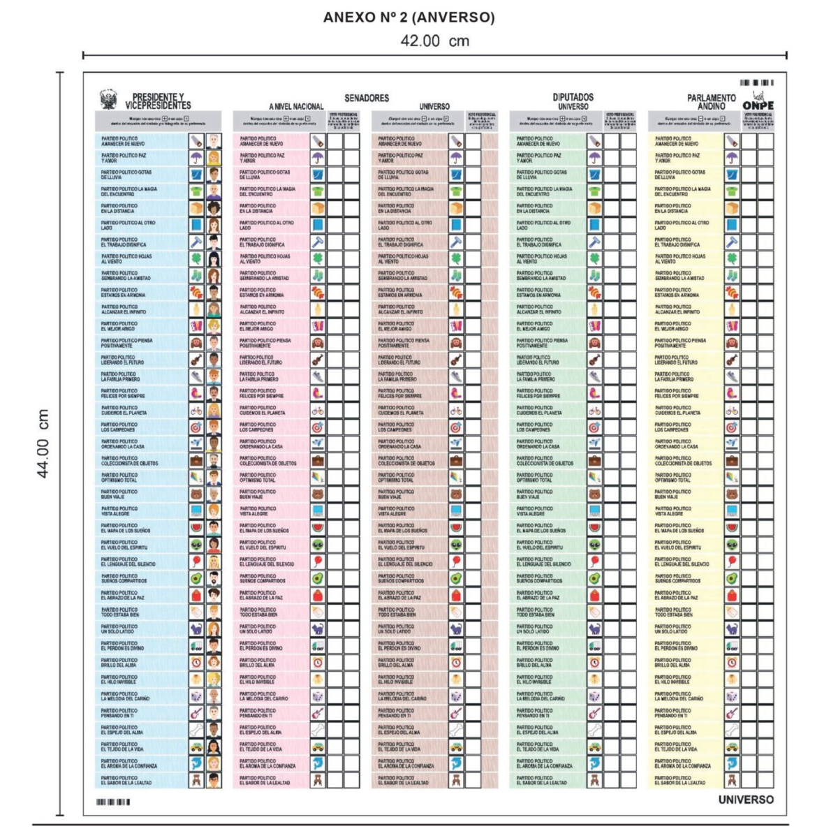 Esta precisión cobra relevancia debido a que la cédula electoral incluirá cinco columnas independientes, correspondientes a presidente, senadores, diputados y representantes al Parlamento Andino, lo que exige mayor atención por parte del elector.
