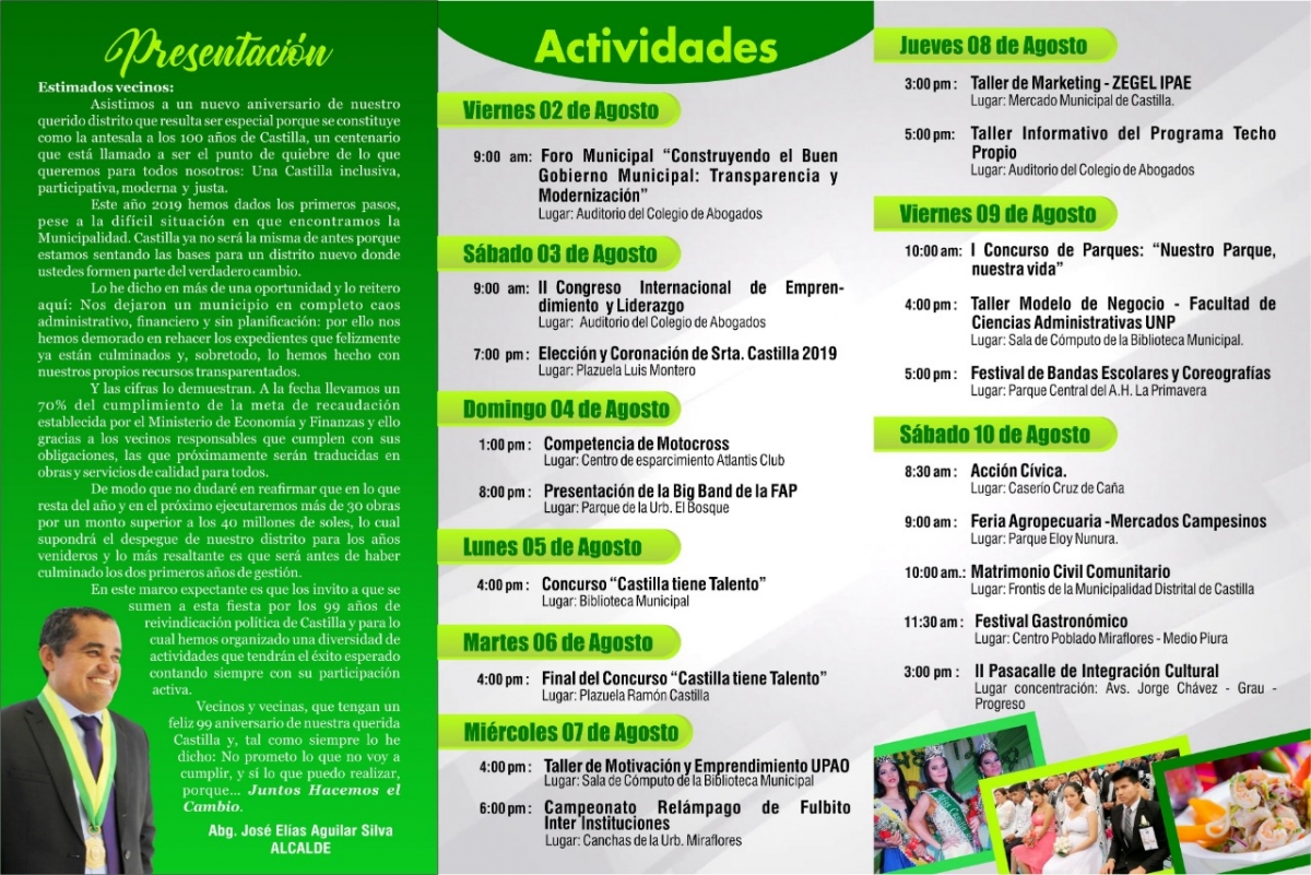 El alcalde de Castilla, José Aguilar, presentó las actividades que se desarrollarán por el aniversario de su distrito.