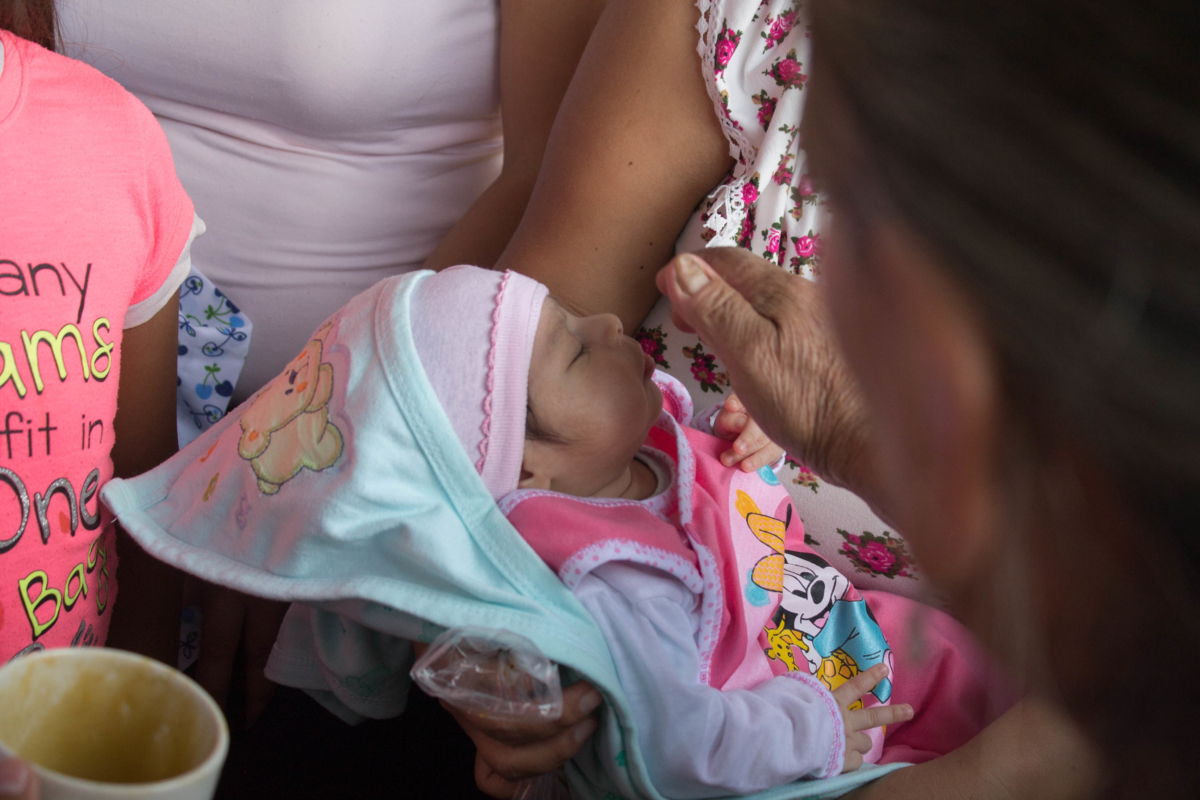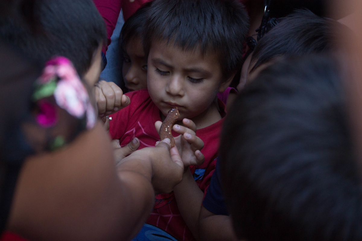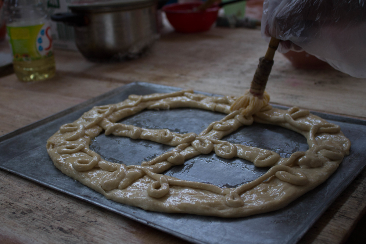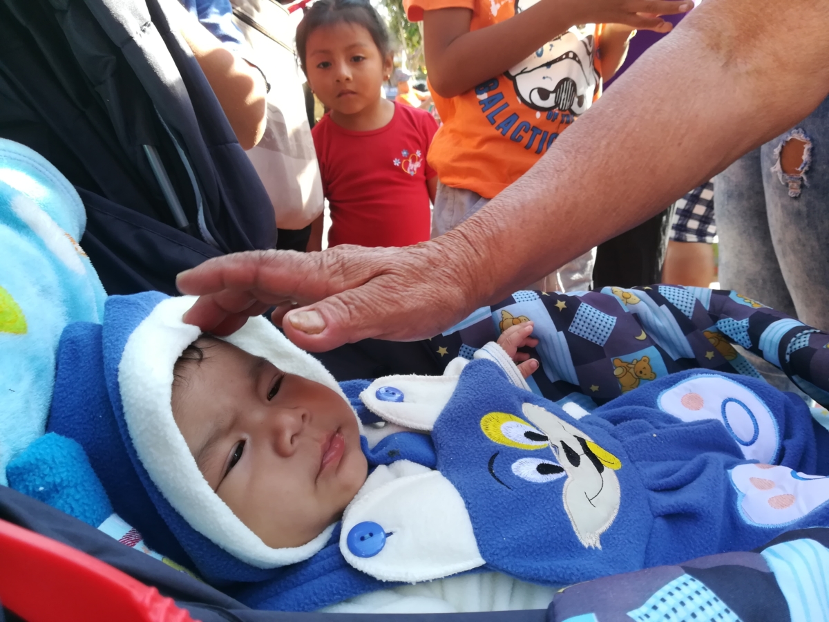 Así en medio de toda la gente que ocupa la plaza central del pueblo, ella busca a un niño que tenga la edad del pariente que perdió. Parte un poco de la galleta, lo mezcla con miel y se lo da de comer al niño diciendo «come por mi hijito, que en paz descanse».
