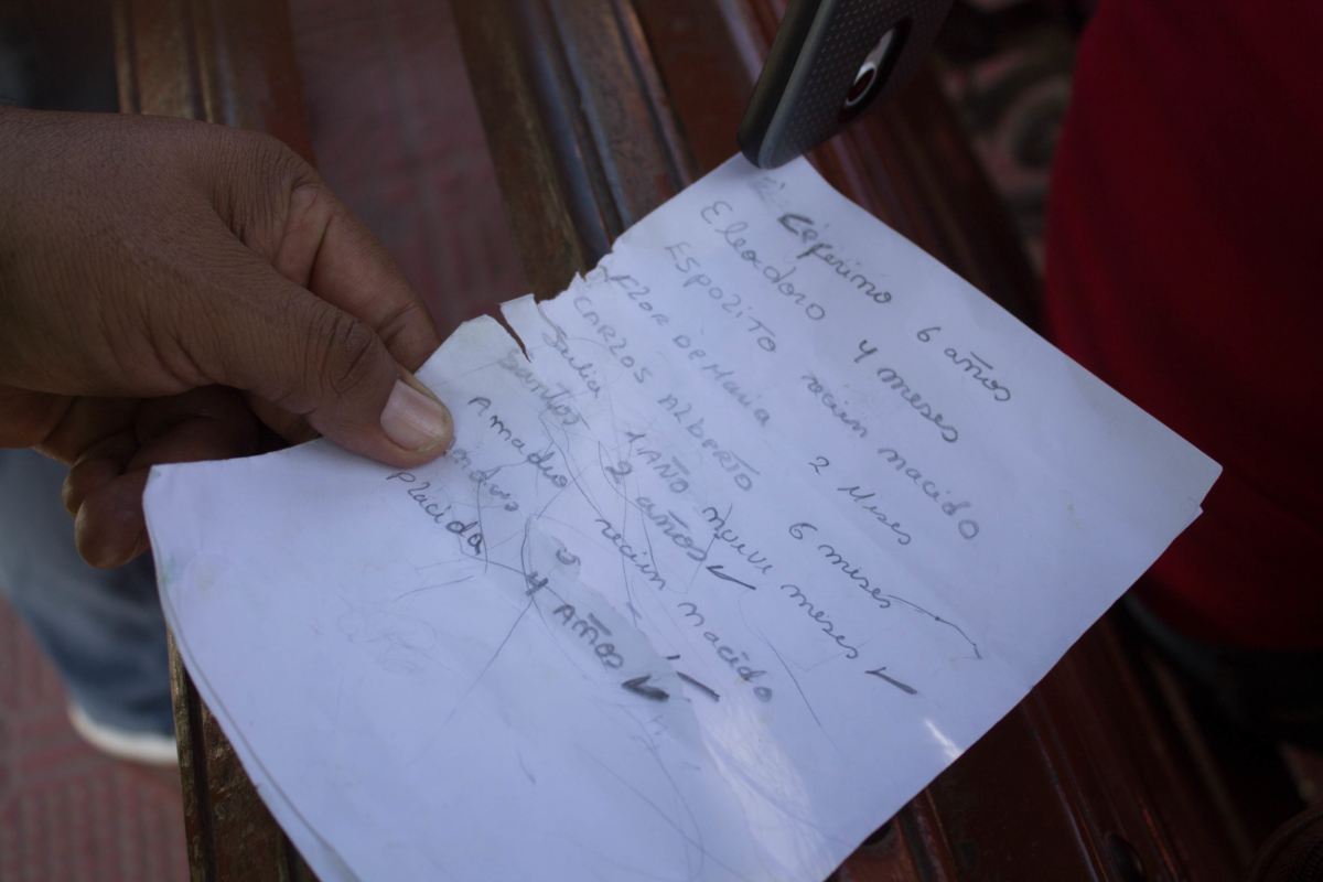 Asimismo revisa la lista que lleva en su mano y marca el nombre del pariente al que le acaba de rendir culto a través del dulce que le ha entregado al niño del parque.