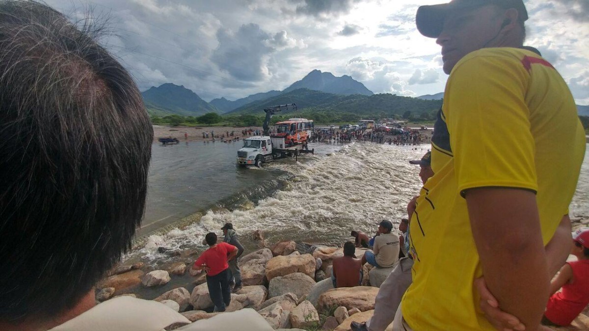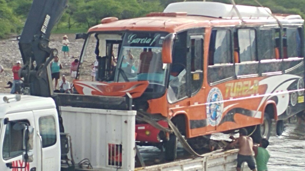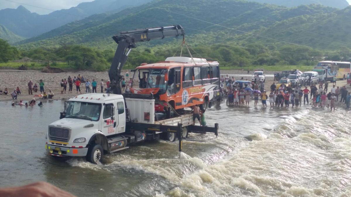 Esta mañana el bus partió de Salitral con destino a Piura. El conductor sin medir el peligro, cruzó la quebrada a pesar del caudal que presenta. El bus se volcó y fue arrastrado unos metros por la fuerza del agua.