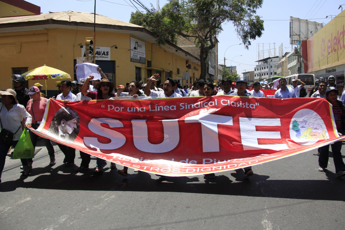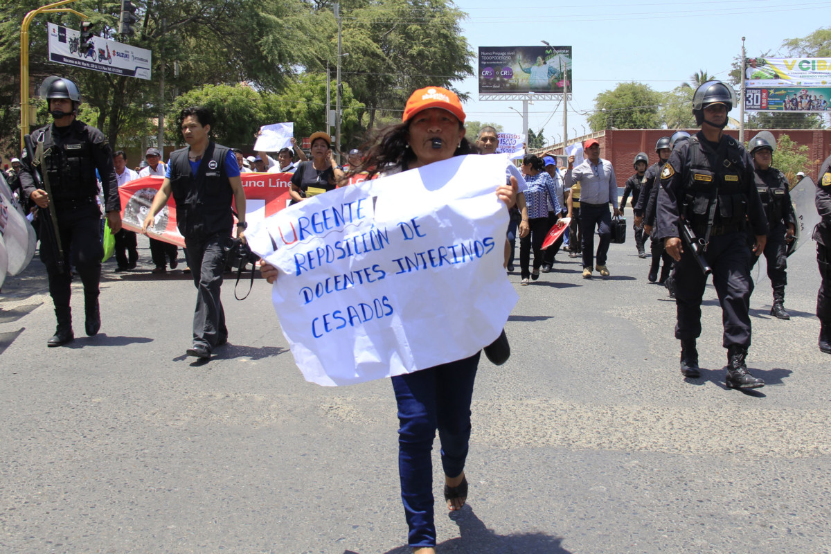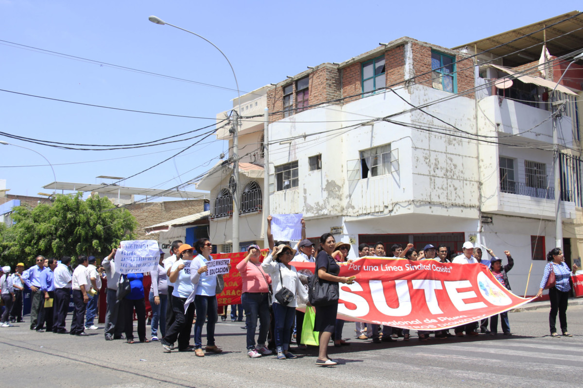Cientos de docentes de la región marcharon por las principales arterias de la ciudad para exigir el pago que se les adeuda por concepto de preparación de clases, cuyo monto asciende a más de 80 mil soles, por maestro.