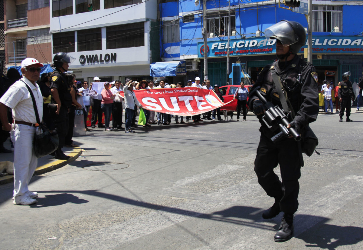 Los pedagógicos se reunieron desde las 9 de la mañana en el parque infantil Miguel Cortés, para luego recorrer las calles del centro de la ciudad, haciendo escuchar su voz de protesta, hasta llegar a la sede del gobierno regional, donde se apostaron en el frontis realizando un plantón.