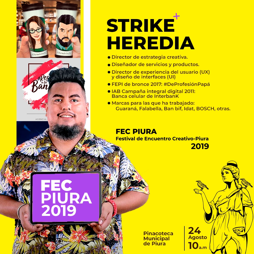 Otro gran invitado es Strike Heredia. Él es diseñador y especialista en Desing Thinking y Desing UX. Actualmente, se desempeña como director de Estrategia Creativa y diseñador de servicios yu productos. FEPI de Bronce 2017: #DeProfesiónPapá.