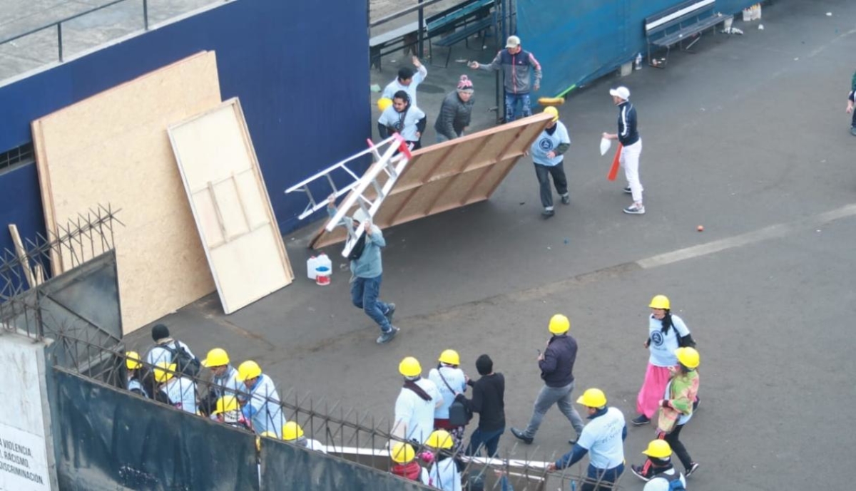 Los barristas de Alianza Lima ingresaron por la zona de occidente del estadio «Matute» y rompieron las maderas colocadas por los miembros de la iglesia evangélica.