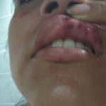 Con el labio reventado y lesiones en el rostro y cabeza, resultó una joven modelo. Golpes propinados según ella por su enamorado.