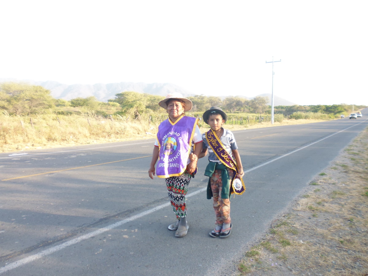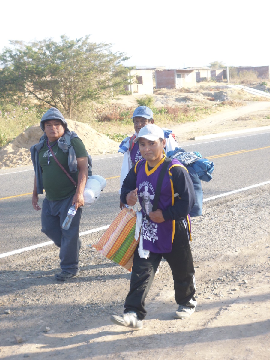 Desde el kilómetro veintiuno se pueden ver franjas moradas formadas por personas jóvenes, adultas y niños que caminan con la voluntad resuelta y la mirada fija en el camino. Con el sol en las espaldas, llevando delgadas colchonetas y cargando cruces, cuadros e imágenes, caminan y no paran hasta el casi amanecer, cuando descansan en carpas armadas a lo largo del camino hasta Ayabaca.