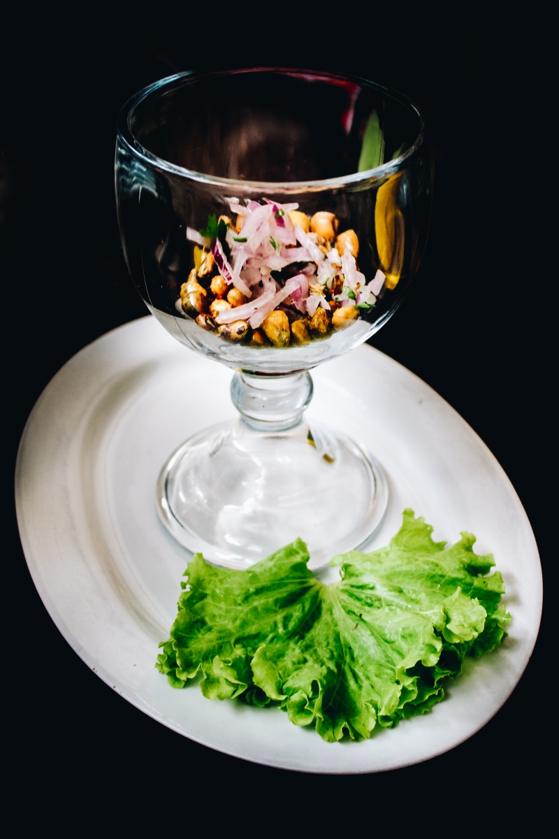 Luego, se le agrega el jugo que está hecho a base de limón y el agua usada para cocinar los mariscos, pues guarda toda su sustancia. Como toque final, algunos le colocan más culantro, pero en esta ocasión le pusieron cancha salada y lo acompañaron con chifles.