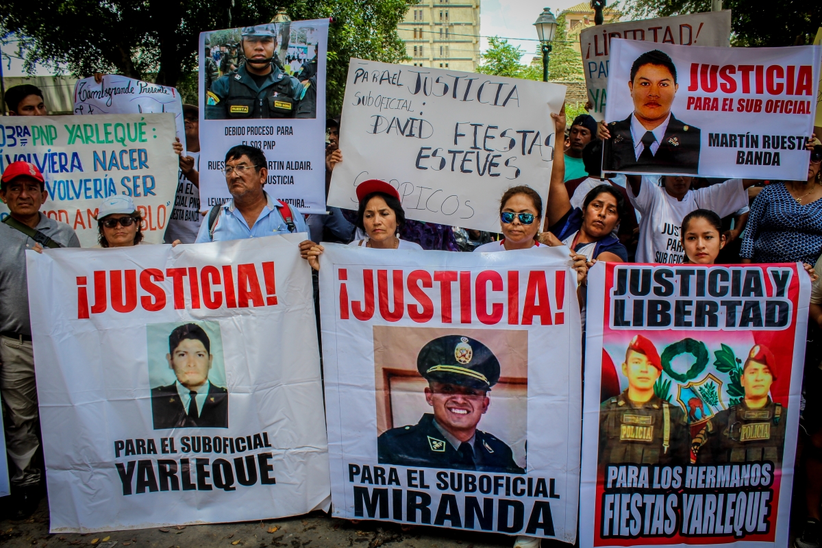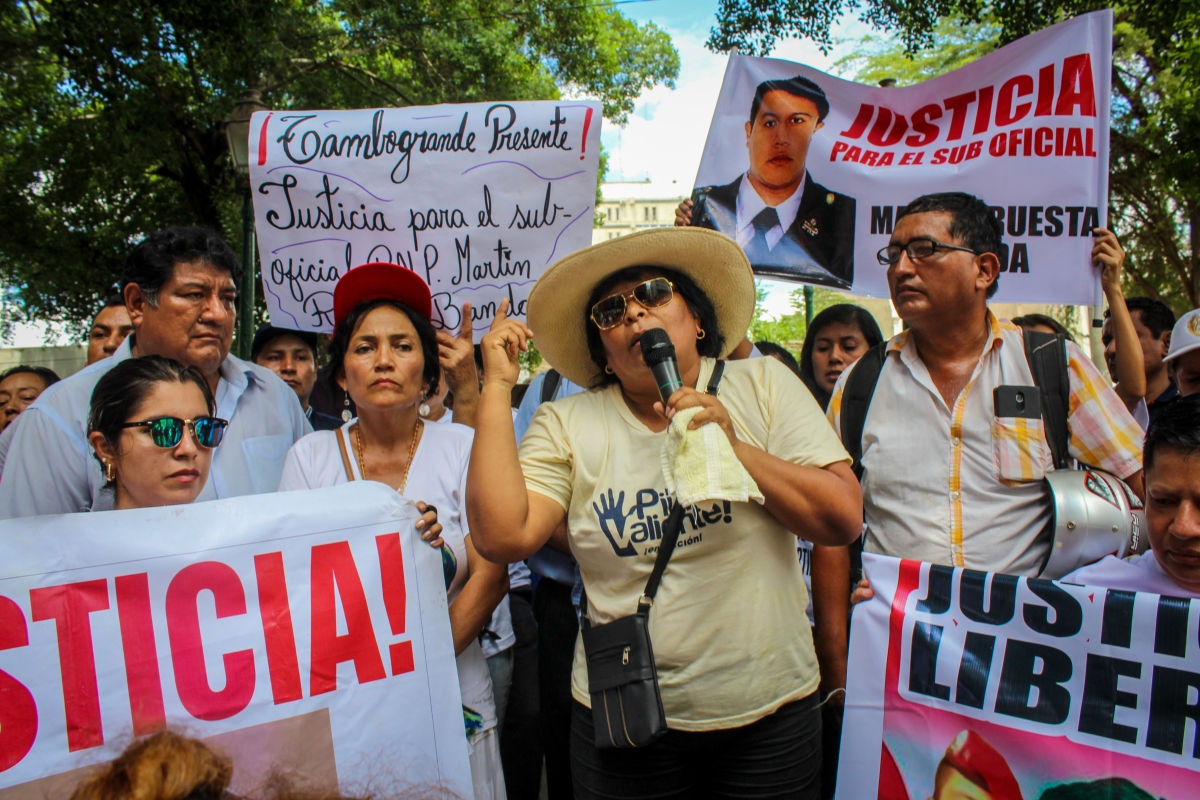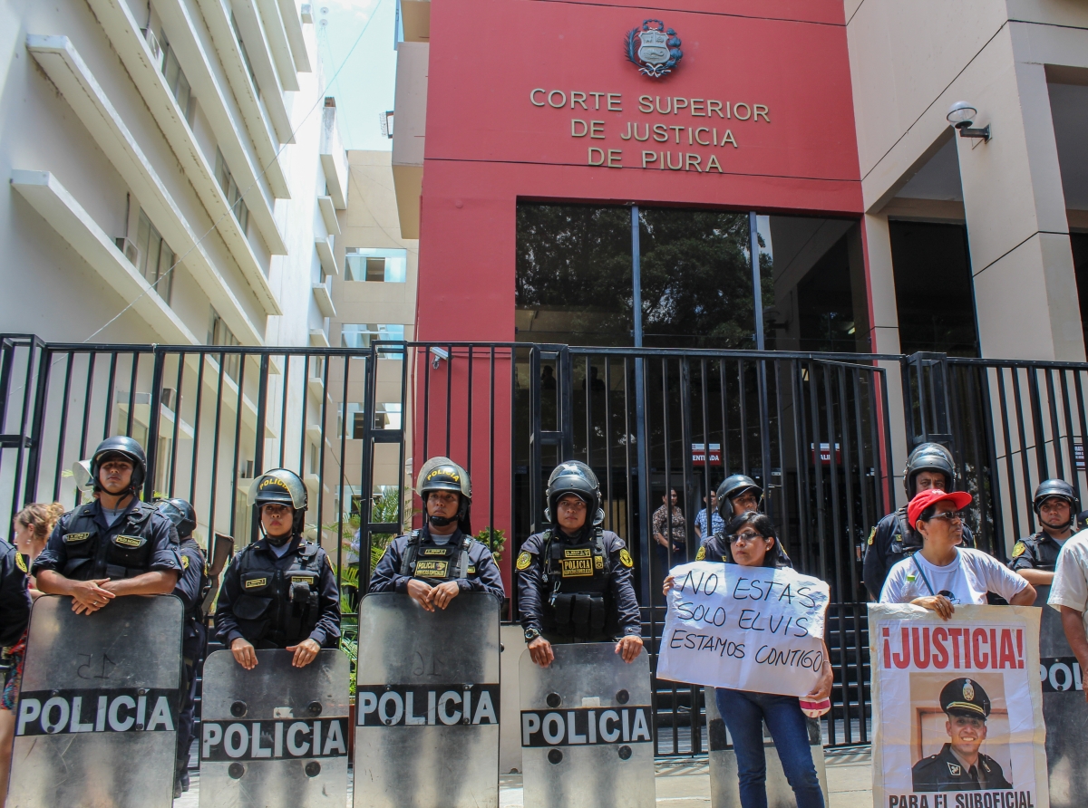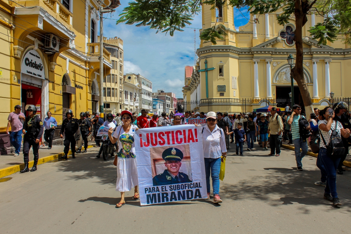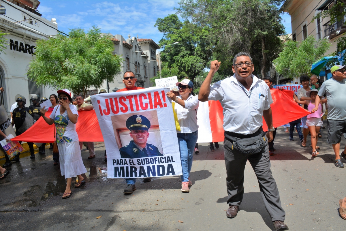 La movilización encabezada por los padres y familiares de Miranda, inició en tres puntos de la ciudad para luego encontrarse en la Av. Grau y marchar al Poder Judicial, donde un juez dictaminó 7 meses de prisión preventiva de Elvis Miranda.
