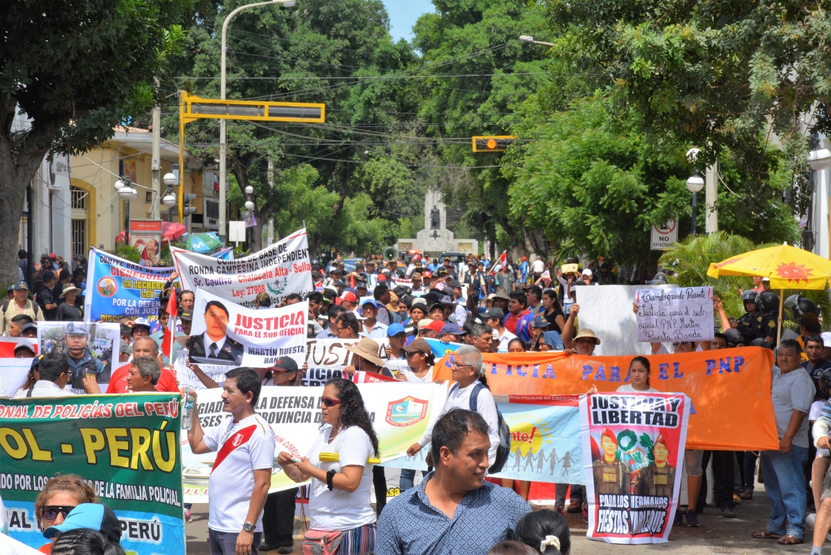 La marcha por la justicia recorrió esta mañana las calles de Piura con el propósito de crear conciencia en la ciudadanía y los actores de justicia respecto al papel que juegan los policías frente a la delincuencia.