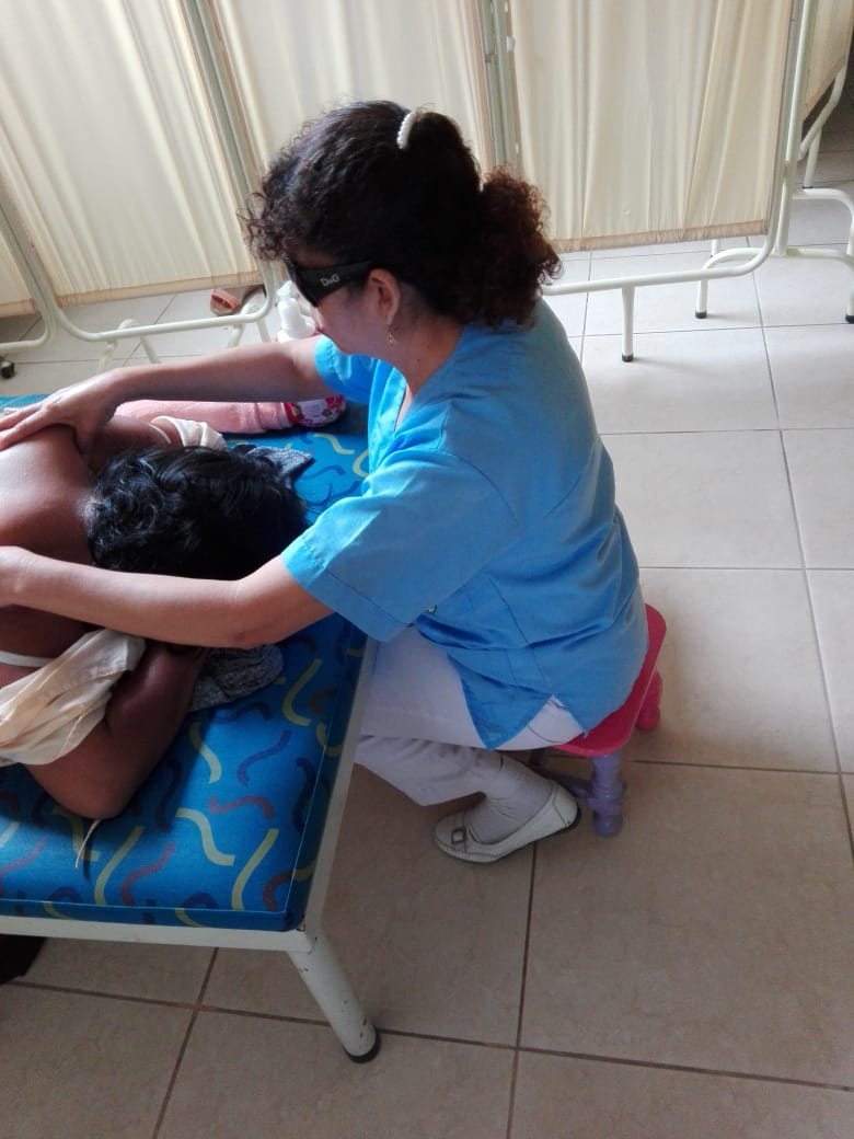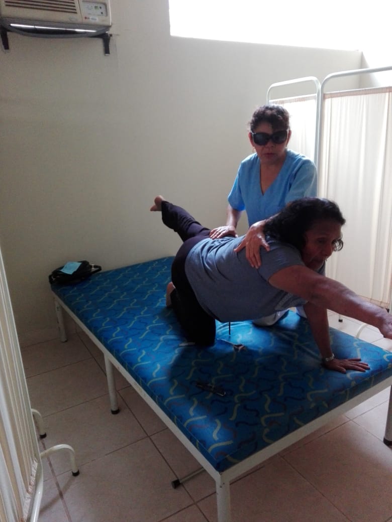 En el Hospital, “realizo los tratamientos de acuerdo a mis posibilidades, por ejemplo, no puedo poner ultrasonido, pero sí hacer las terapias manuales”. Consciente de sus limitaciones, siempre busca una solución, por ejemplo, “pedí a mis compañeros que me marcaran el equipo para poder reconocer los cables al conectarlos y trabajar con normalidad”, reveló.