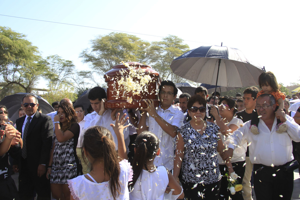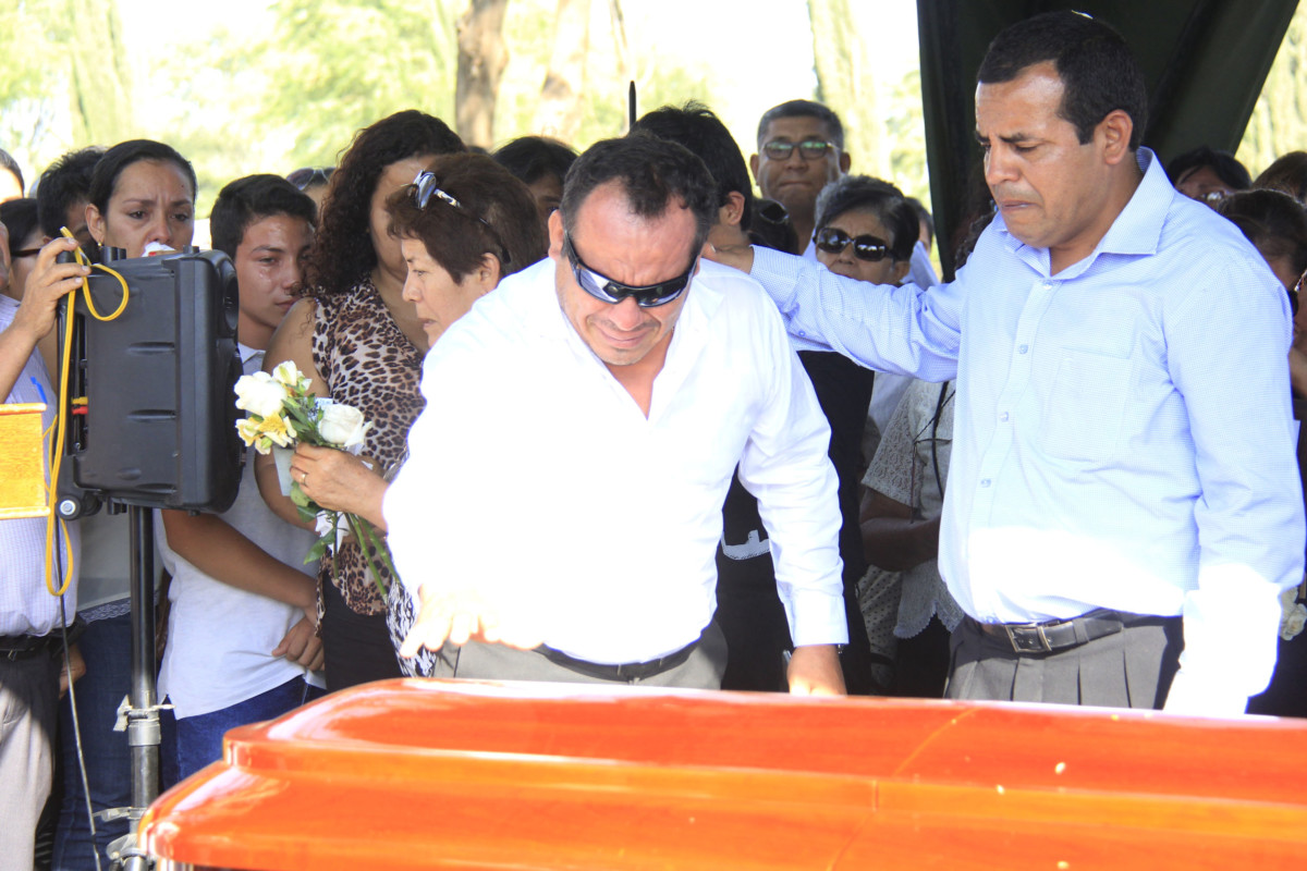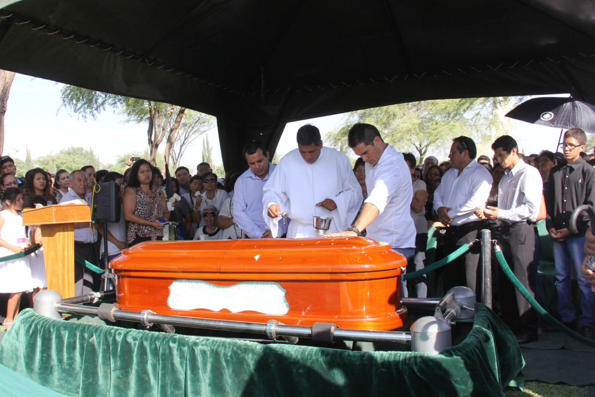 La carroza fúnebre llegó al Campo Santo Parque del Recuerdo alrededor de las 4:00 p.m, allí lo esperaban sus amigos del «Escarabajo Club Piura» comunidad que Luis integro en marzo de este año. El ataúd de «El hombrecito de paz» fue recibido entre cánticos, lágrimas y gritos que pedían justicia.