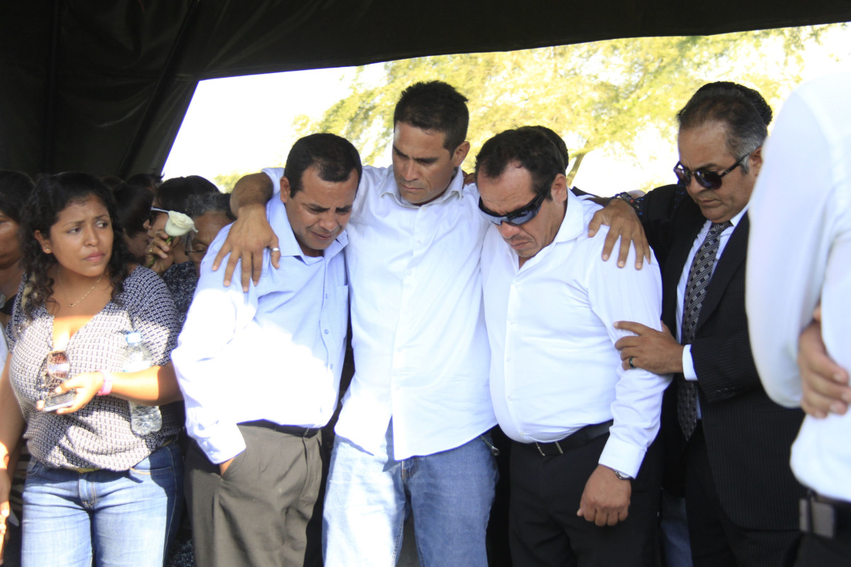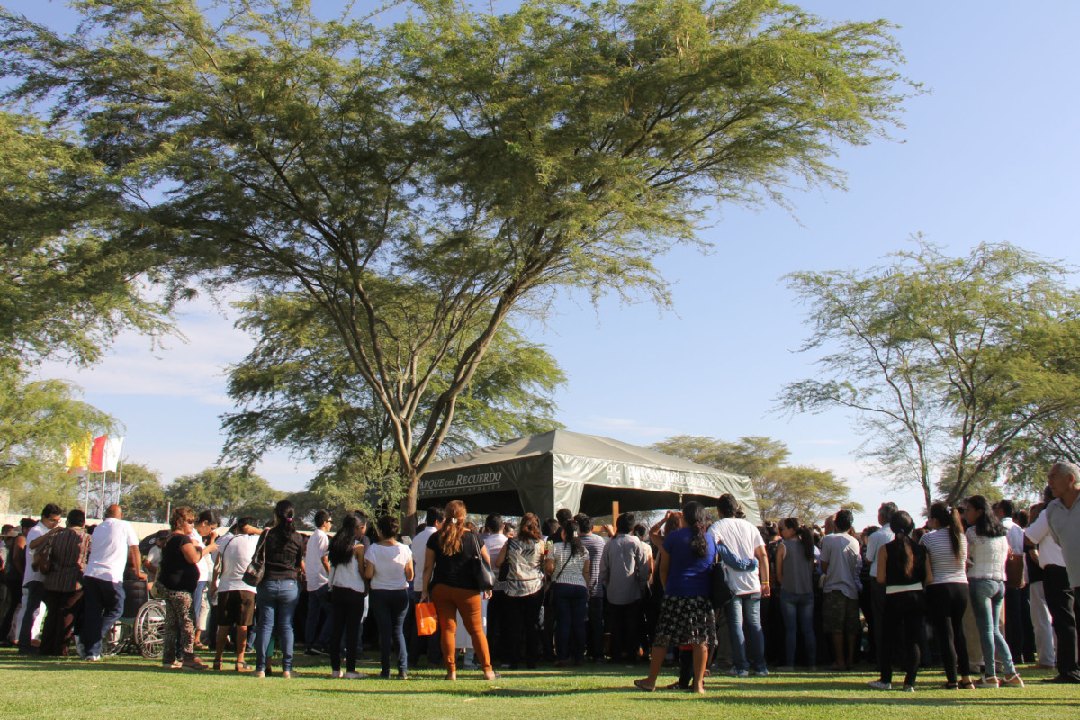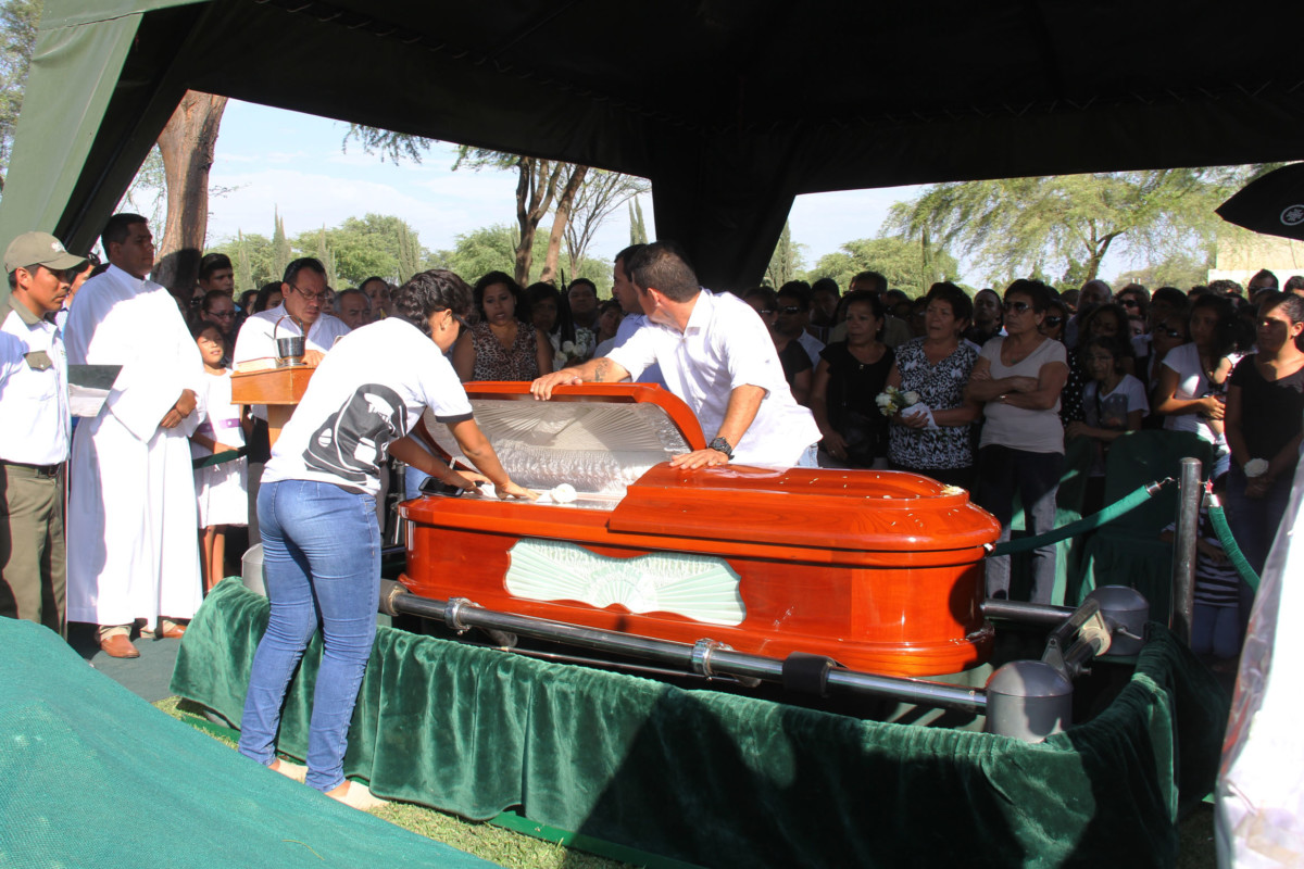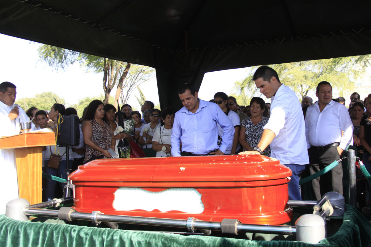 La carroza fúnebre llegó al Campo Santo Parque del Recuerdo alrededor de las 4:00 p.m, allí lo esperaban sus amigos del «Escarabajo Club Piura» comunidad que Luis integro en marzo de este año. El ataúd de «El hombrecito de paz» fue recibido entre cánticos, lágrimas y gritos que pedían justicia.