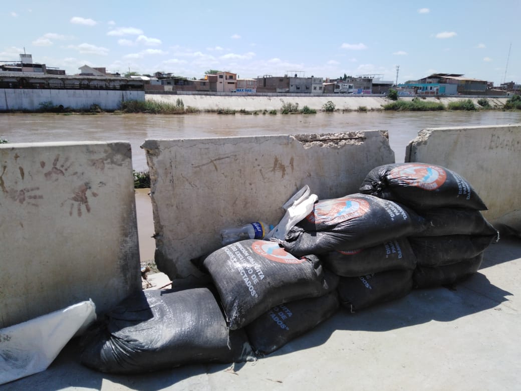 También, al no ser defensas ribereñas cuentan con un espacio de, aproximadamente, 20 cm que ha sido tapado con sacos de arena para prevenir una posible salida del río. Luego de la alerta roja maderas, botellas, plásticos y bolsas acompañan a estos sacos de arena.