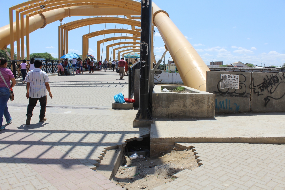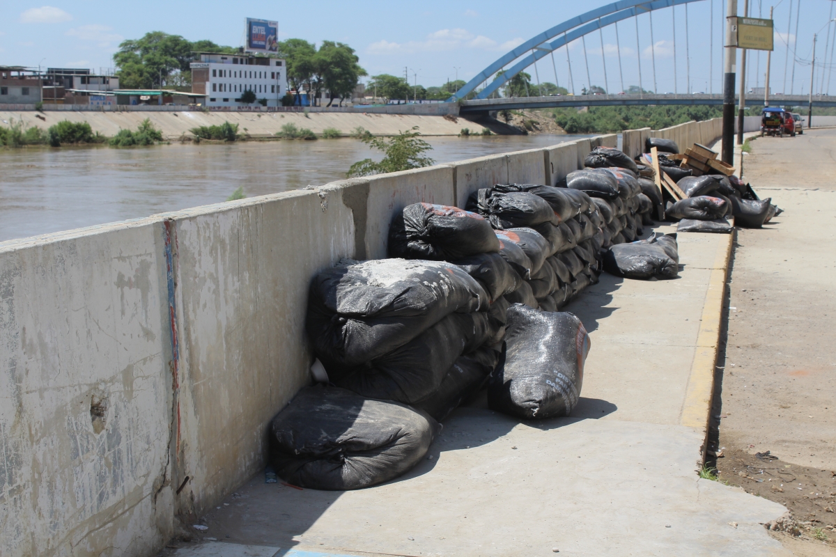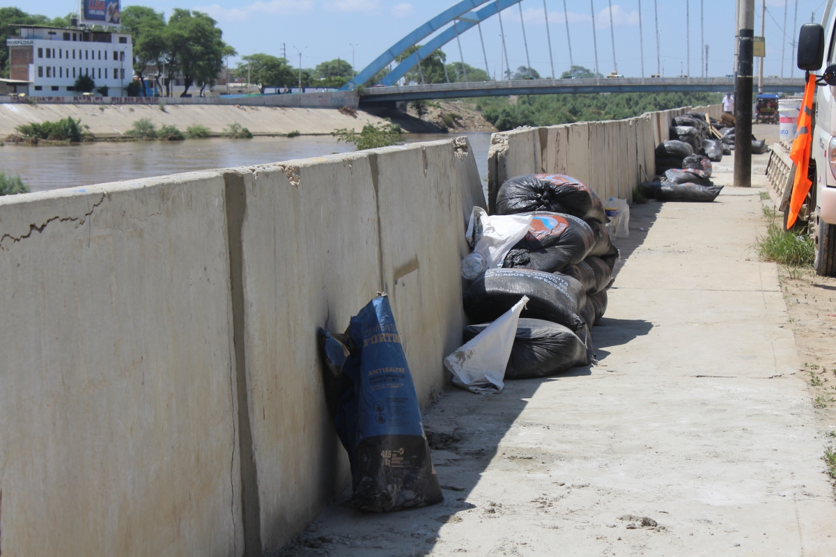 Asimismo, dado que no se han realizado acciones de fortalecimiento en los muros del malecón, se ha colocado una cinta amarilla para evitar el pase peatonal a un lado del puente Sánchez Cerro. Pese a esta cinta, los peatones insisten en cruzar.