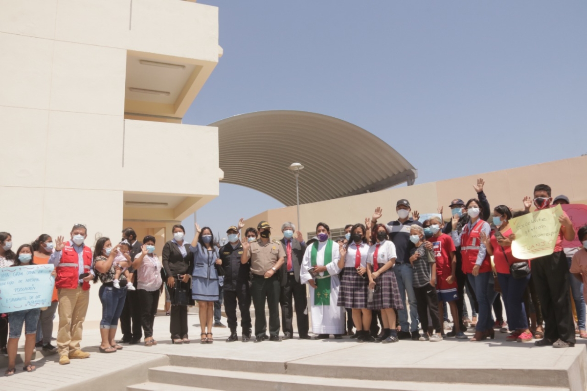 Asimismo, el alcalde, Juan José Díaz, destacó que la inauguración de este colegio es importante. Todo ello, porque se ha considerando que hasta el 2022, de la mano con la Reconstrucción, se tiene como meta entregar 37 colegios; con alto nivel de calidad diseñados considerando normas antisísmicas.