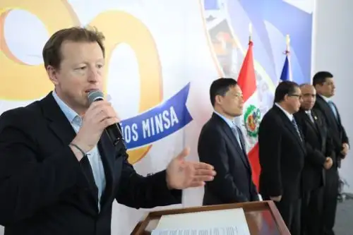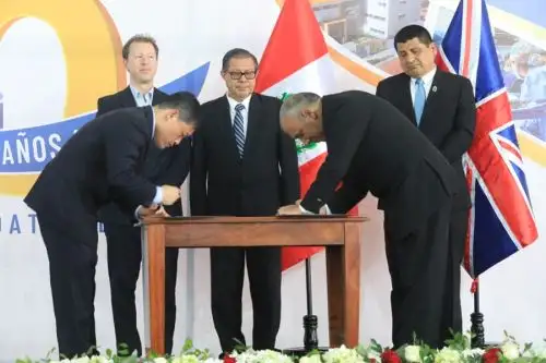 La ceremonia de firma se realizó en el marco del 90 aniversario del Minsa y fue presidida por el viceministro de Prestaciones y Aseguramiento en Salud, Herberth Cuba, en representación del ministro de Salud, César Vásquez. También participaron el jefe de Gabinete del Despacho Ministerial, John Joo Salinas; el coordinador general del Pronis, José Valega Sáenz; el embajador del Reino Unido en Perú, Gavin Cook; y el representante de la empresa Sinohydro Corporation Limited, Kaizhi Wang.
