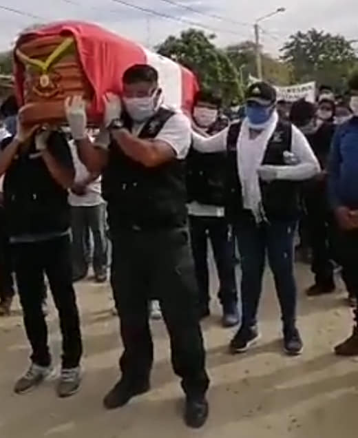 En medio de profundas muestras de dolor, fueron enterrados esta mañana los restos del alcalde delegado de Casagrande (La Arena), José Manuel Fernández Inga, quien estuvo desaparecido tras ingresar al hospital Santa Rosa por un caso de derrame facial y posterior diagnóstico de COVID-19.