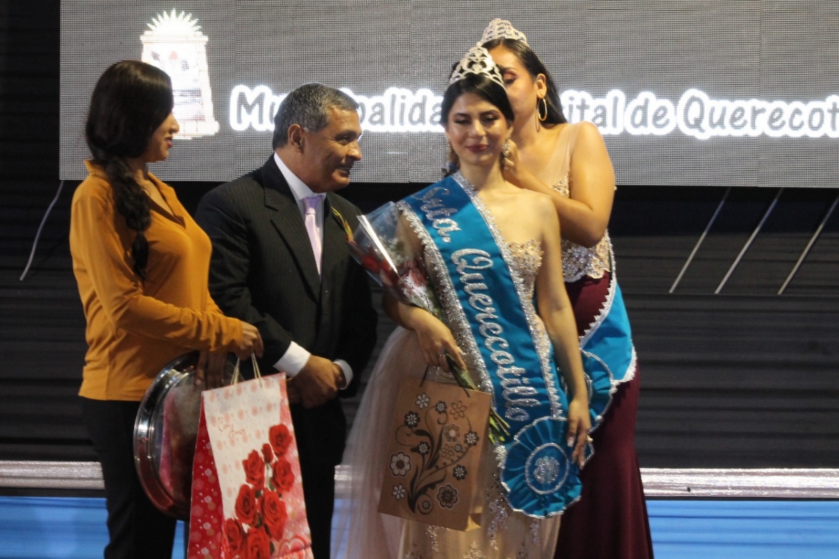 El regidor, Edgar Rivera Rujel, fue el encargado de colocar la banda a la Srta. Turismo y la regidora, Pilar Carreño Ruiz, hizo lo propio con la Srta. Elegancia. El público querecotillano abarrotó la plaza de armas para presenciar la elección de las nuevas soberanas, que fue animado por reconocidos artistas locales.