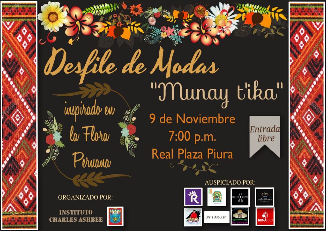 El evento lleva el nombre quechua «MUNAY TIKA», cuya traducción es «Amor por las Flores», y se celebrará el sábado 09 de noviembre a las 7 p.m. en el centro comercial Real Plaza.