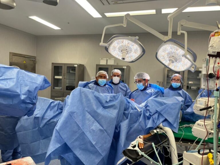 El equipo médico conformado por los traumatólogos Juan Luis Gómez Arrestegui, Carlos Pisconte y Neiser Guerrero, junto a una instrumentista y una anestesióloga, realizó la cirugía empleando un sistema de clavo trocantérico de titanio (TFN). Este procedimiento mínimamente invasivo reduce el daño a los tejidos y acelera el proceso de recuperación.