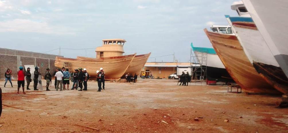 Con la autorización de descerraje y allanamiento del Quinto Juzgado de Investigación Preparatoria en Delitos Ambientales de la Corte Superior de Justicia de Piura, las autoridades ingresaron a los astilleros (centros de transformación primaria) ubicados en Zona Industrial de la parte alta de dicha provincia, constatando el uso de madera ilegal en la construcción de embarcaciones pesqueras comerciales y artesanales.