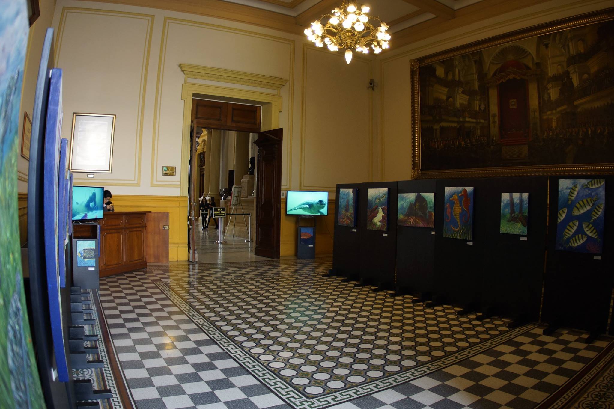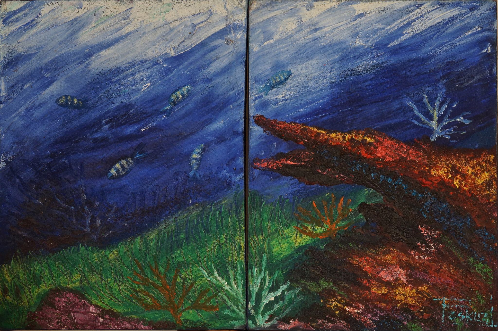 Ha llevado sus exposiciones hasta el Congreso de la República y es que los cuadros que Pascual pinta son todos de paisajes únicos del fondo marino. La técnica que utiliza le permite impregnar la pintura en el lienzo incluso bajo el agua.