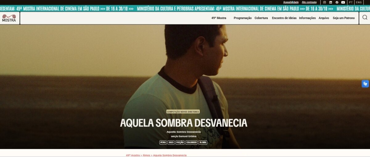 Luego de su fructífero paso por el Festival Internacional de Cine en Guadalajara (FICG) – México, la película piurana “Aquella sombra desvanecía”, del cineasta sullanero Samuel Urbina Tume, compitió recientemente en el 49° Festival Internacional de Cine de Sao Paulo – Brasil, dejando el nombre de Piura y el Perú en alto.