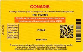 Las personas con discapacidad severa (visual, física, psicológica, entre otras), y que estén inscritas en el Consejo Nacional para la Integración de la Persona con Discapacidad (Conadis), podrán contar con el carné amarillo, documento que les otorga pase libre en el servicio de transporte público terrestre urbano e interurbano.
