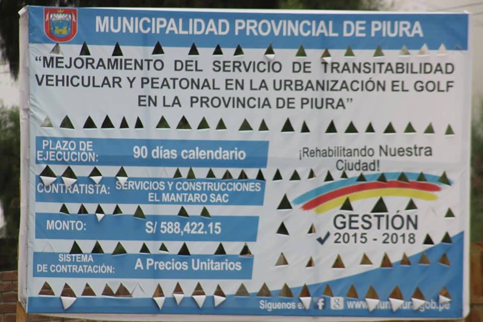 Más de medio millón de soles costó realizar la obra de mejoramiento del servicio de transitabilidad vehicular y peatonal de la urbanización El Golf de Piura, ejecutada por la Municipalidad Provincial de Piura.