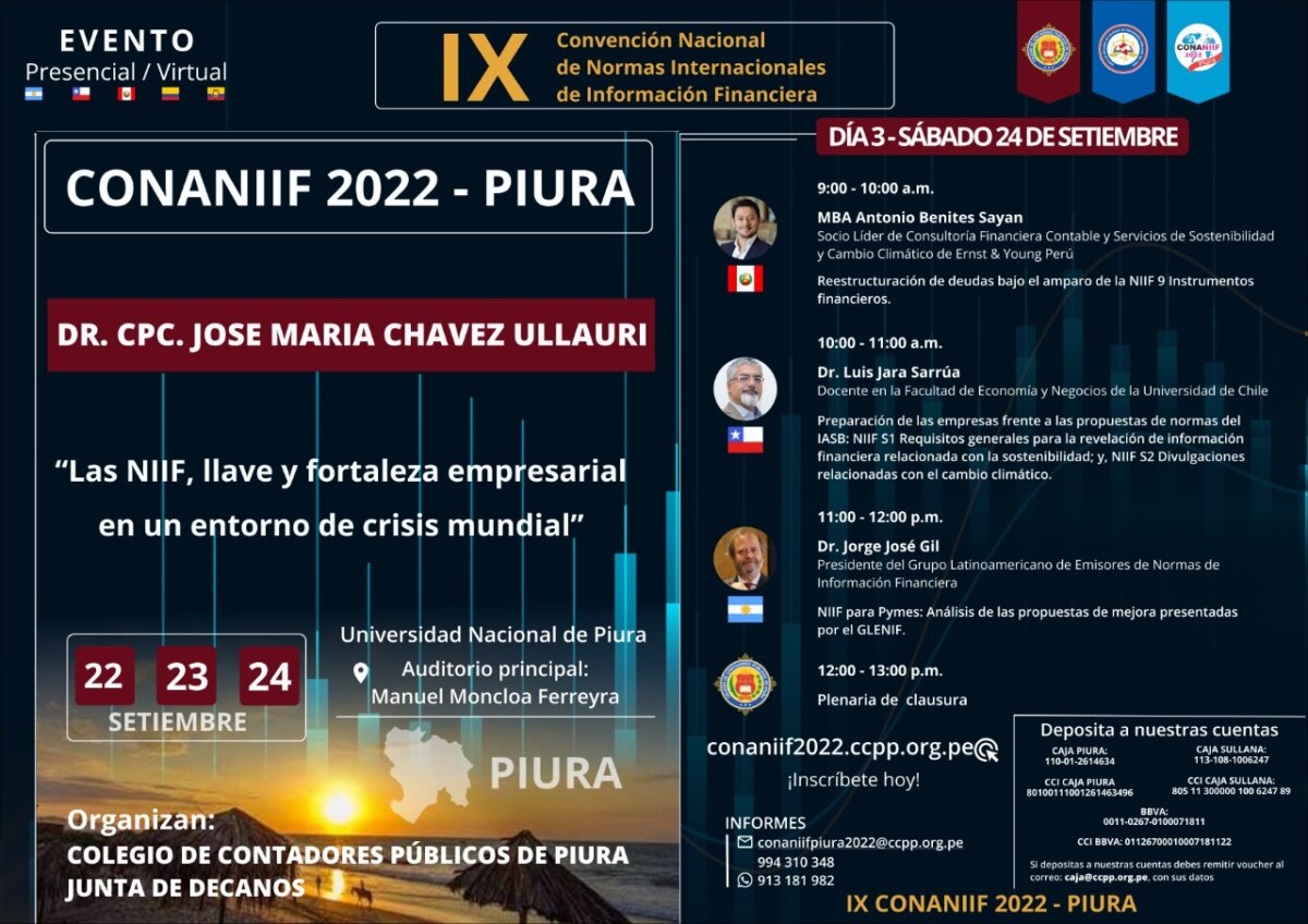 «Vamos a desarrollar la novena Convención Nacional de Normas Internacionales de Información Financiera. Este no solo beneficiará a los profesionales en el sector; sino, también a los empresarios porque esto es el lenguaje de los negocios». Así lo indicó el decano del Colegio de Contadores de Piura, Manuel Paiva Tume.