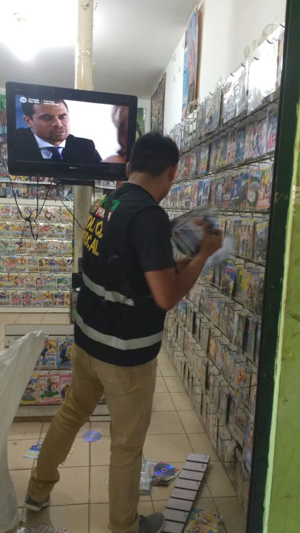 Personal de la Policía Fiscal intervino en el Merado de Piura los stands 207, 208, 235 en donde hallaron gran cantidad de material audiovisual ilegal en formatos de cd, Mp3, Mp4 y Blu ray. En este lugar la policía incautó 13 sacos con material audiovisual pirata.