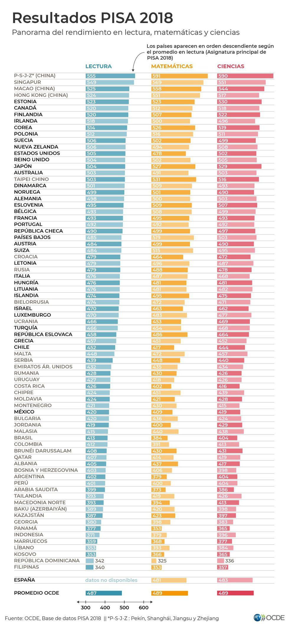 Los resultados de la prueba PISA 2018, realizados por la Organización para la Cooperación y el Desarrollo Económicos (OCDE), fueron publicados este martes.