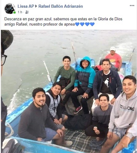 Aún, en su Facebook, se pueden apreciar las fotos de los momentos vividos de este buzo profesional. En todas las imágenes aparece con esa sonrisa amplia de las personas que hacen lo que les apasiona. Ahí, en ese lugar, diversas personas han manifestado su cariño y condolencias a la familia.