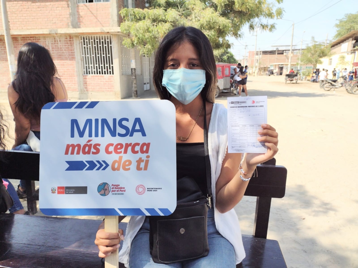 Además, ella no dudó a sumarse a la jornada de prevención junto al personal y posó con su compañero de trabajo para “decirle a los piuranos que no le teman a la vacuna”.