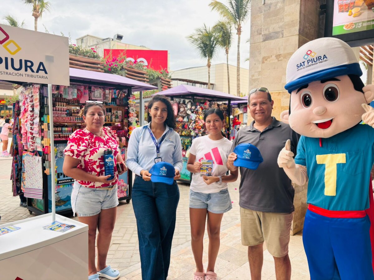 La jornada también incluyó orientación sobre Impuesto Vehicular, multas y papeletas de tránsito, así como otros servicios relacionados con la gestión tributaria municipal. Como parte de las activaciones, se promovió la participación ciudadana con el apoyo de Tributín, la mascota institucional del SAT Piura, que acompañó las acciones informativas.