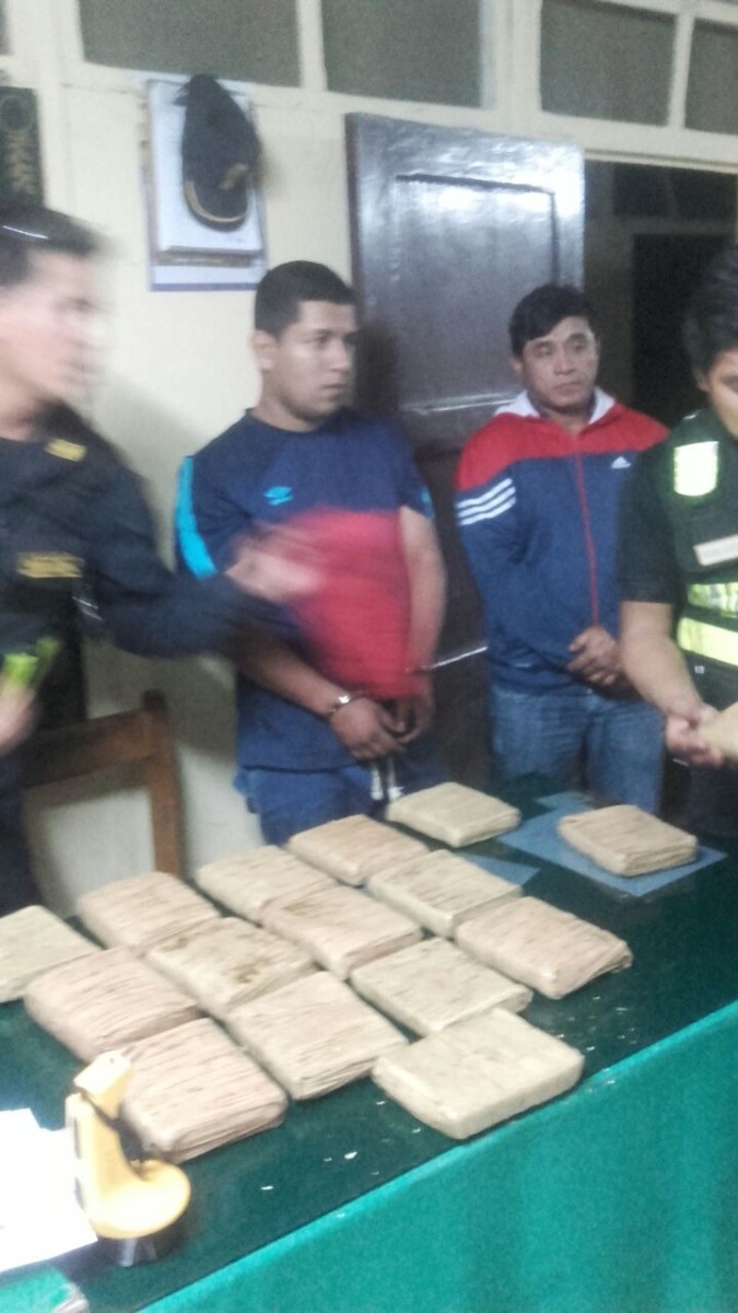 Félix Arangoitia Horna (32) y Julio Arméstar Rodríguez (45) fueron detenidos por personal policial de carreteras de Los Órganos-Talara en el preciso momento que trasladaban 8 kilos de droga.