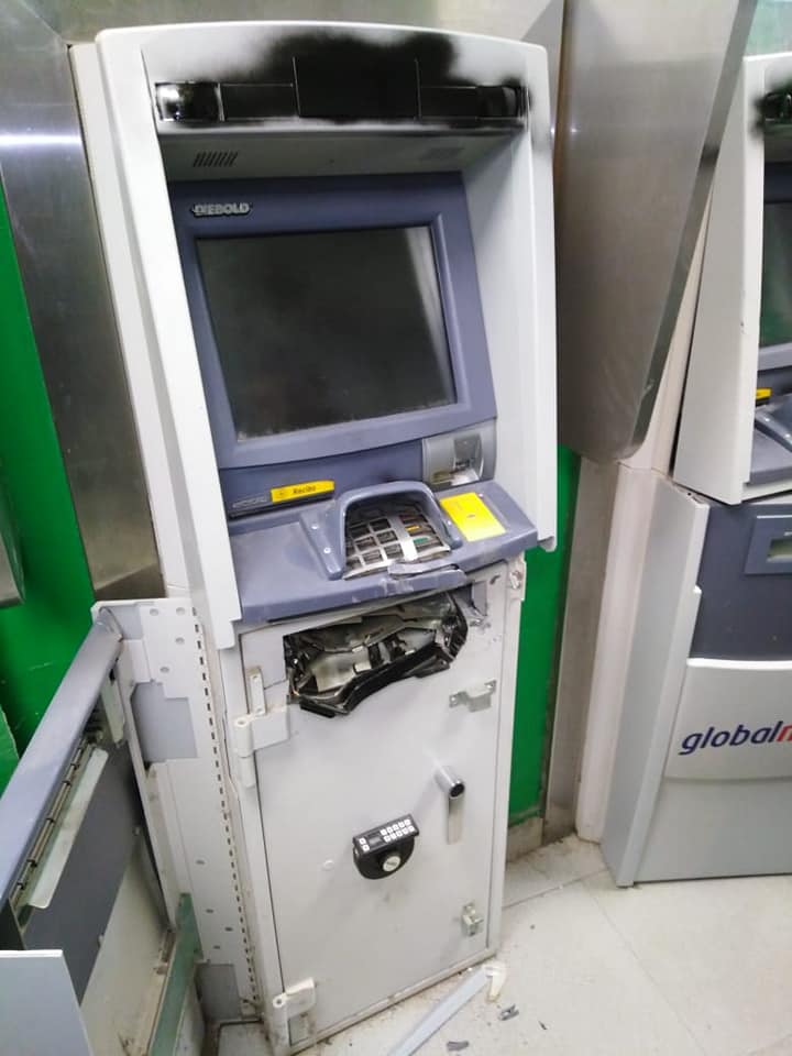 Cubiertos con pasamontañas los nueve delincuentes llegaron en una camioneta blanca e irrumpieron en los cajeros del banco ubicado en el centro cívico de la ciudad. Con pesadas herramientas dañaron los cajeros para sustraer el dinero, sin contar que el vigilante activara la alarma y frustre el asalto.