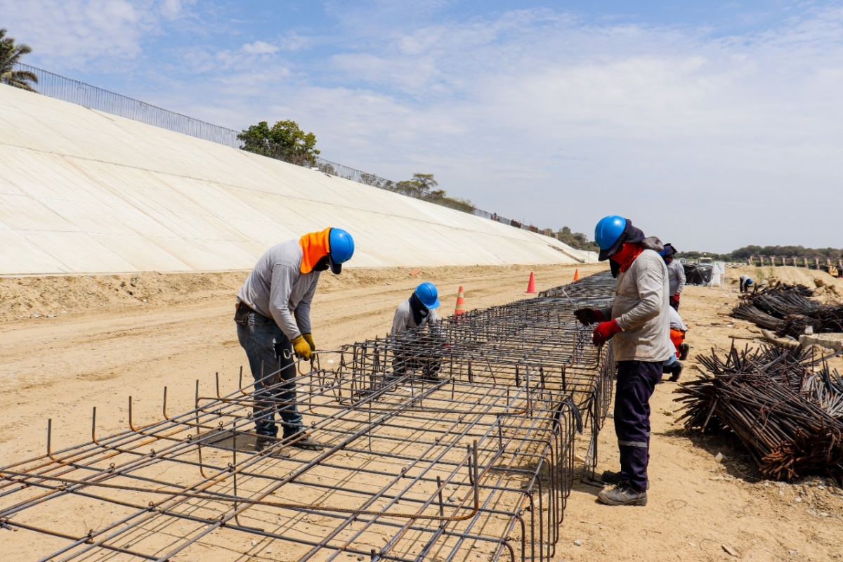 Las obras cuentan con un avance físico del 64%. Además, se estima que para diciembre se concluya con todo el primer nivel de las losas inclinadas (diques), tanto en la margen de Piura, como en la de Castilla.