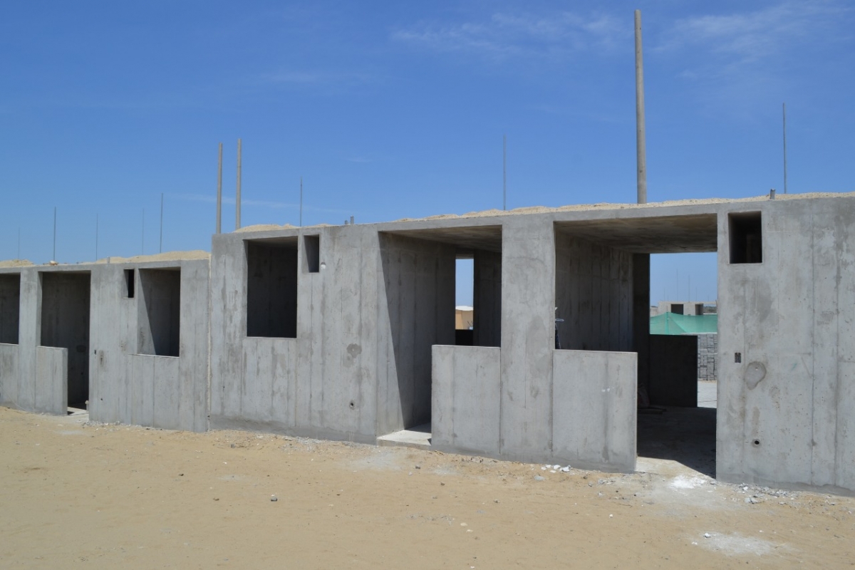 ABB INGENIERÍA Y CONSTRUCCIÓN, empresa encargada de la ejecución del proyecto, informa que este avanza a un ritmo de 4 casas diarias gracias al empleo de un moderno sistema de encofrado, sobre el cual se vierte el concreto armado junto a fierro, arena y piedra. Esto dota a la vivienda de una “estructura monolítica”, la cual es sismorresistente y capaz de soportar un segundo nivel.