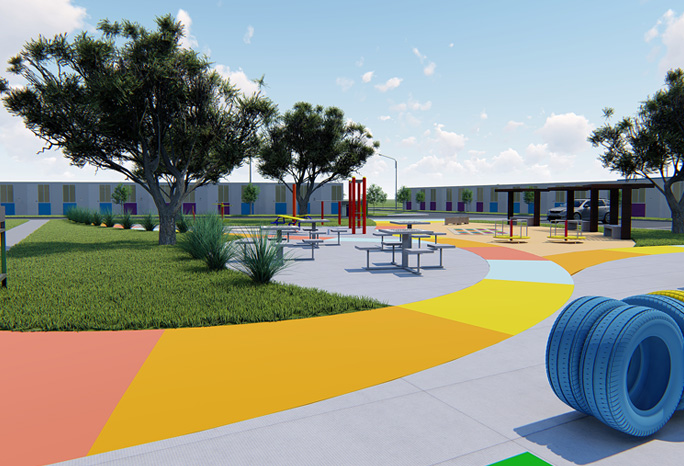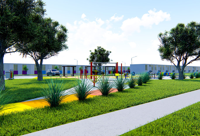 Tan importante como el espacio familiar lo es el vecinal. Vive Hogar Castilla entrega a sus residentes pistas, veredas y servicios completos (luz, agua y desagüe). Pero, sobre todo, más de 60 mil m² de áreas verdes, distribuidos en 16 parques, para favorecer la integración y recreación de las familias, además un boulevard con losas deportivas para grandes y chicos.