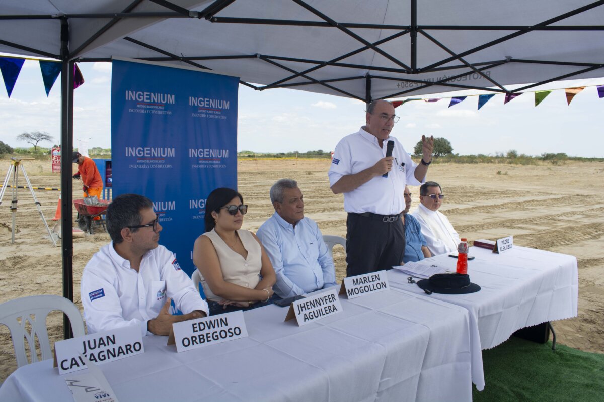 Durante el acto, el padre Alex Abad Acha realizó la bendición oficial del terreno y de la primera piedra, acompañado por el equipo de la Constructora Ingenium, encargada de ejecutar las obras.